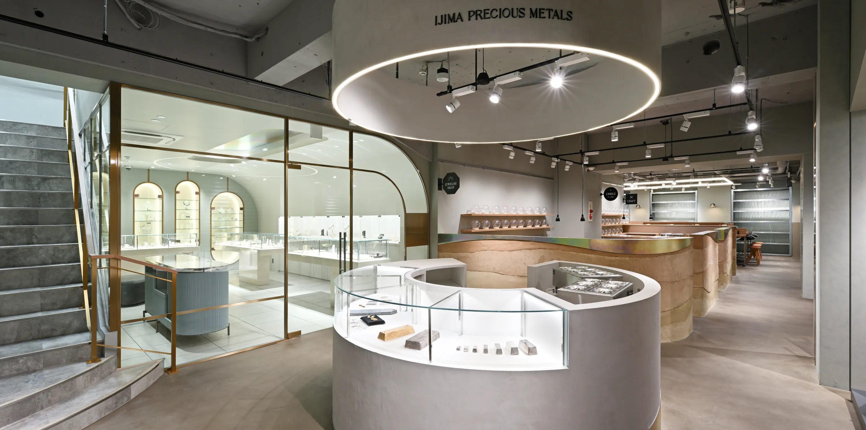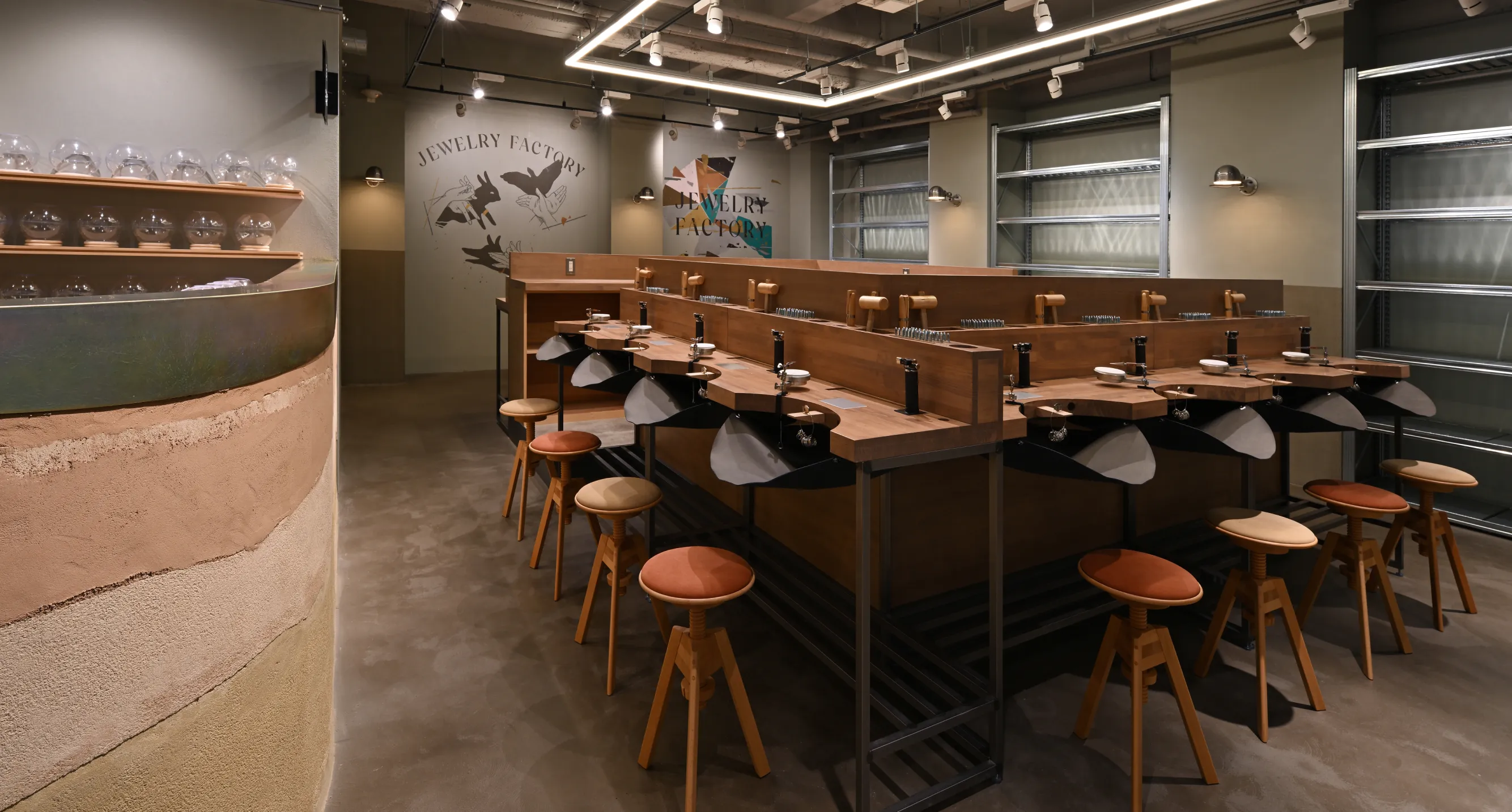 まだまだ一株式会社との協業による1939年代より4代に渡り続くジュエリーショップのリニューアルプロジェクト。今まではジュエリー販売のみを主軸とした店舗フロアに、彫金とキャンドル製作を体験できるエリアを加えた3業態からなるショップへのリニューアル。