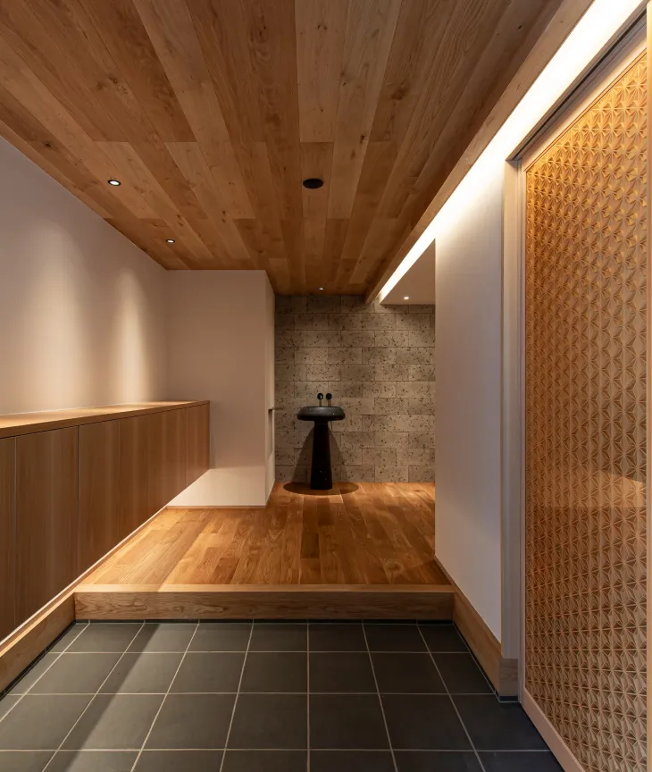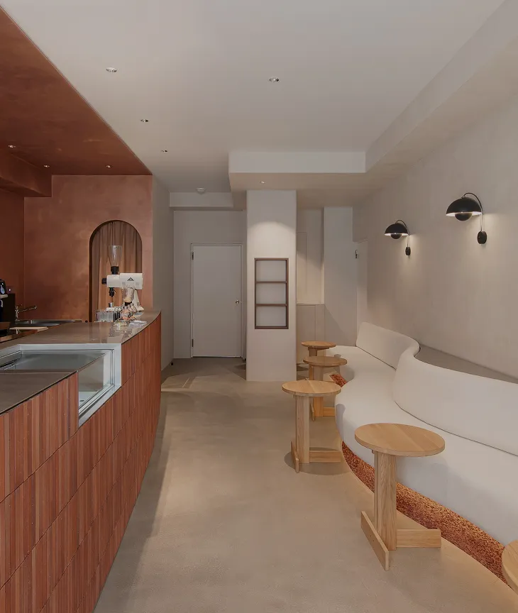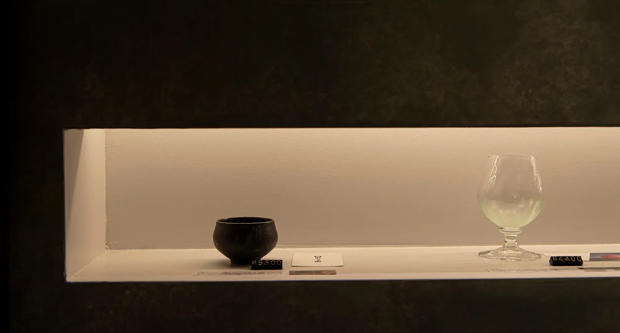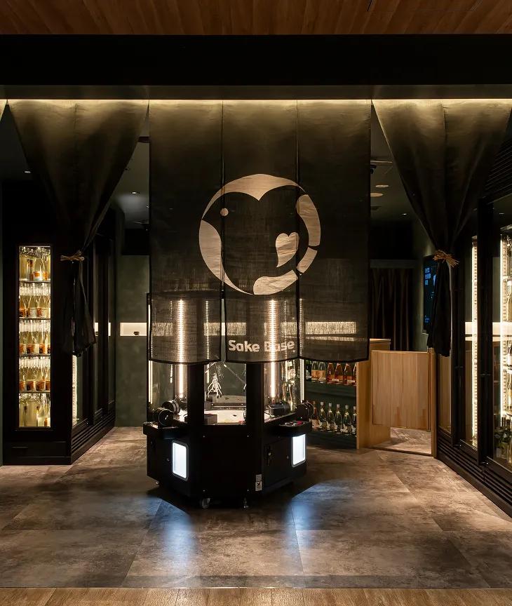 クレーンゲーム機制作メーカーの協力により既製品をデザインテーマに合わせてシックなブラックで仕上げた。作家物のお猪口などを飾れる細長いニッチや、底面に照明のついた酒瓶陳列棚など、日本酒を様々な角度から楽しめる空間となっている。